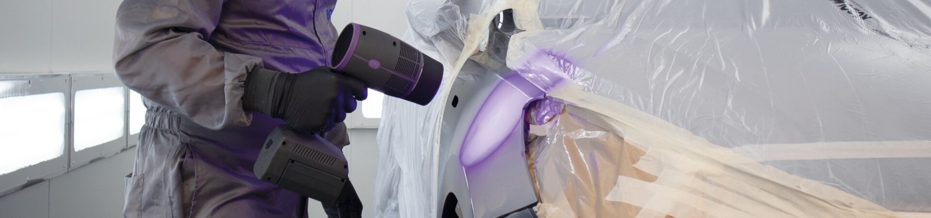 Durch Anwendung der UV-LED-Härtungstechnologie werden die Trocknungszeiten wesentlich reduziert und damit arbeiten Sie schneller und effizienter. Erfahren Sie mehr über unsere spezialisierten LED-Lösungen für die schnelle und hochwertige UV-Härtung jeder Karosserie- und Lackreparatur.